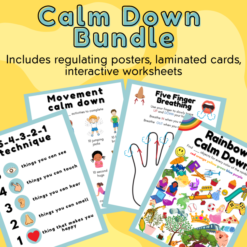 Get ready to regulate this Back to School Season! This bundle includes 7 posters with self regulation techniques and visual strategies to promote a calm body for your students. Includes Five Finger Breathing, Rainbow Calm Down technique, 54321 technique and more! Also includes interactive worksheet you can laminate and match the emotions with the zone.