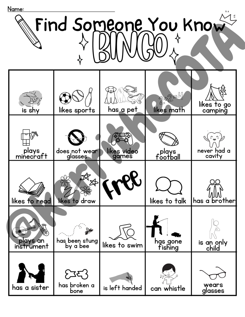 Break the ice with a new set of "Getting to Know You" activities, including an interactive board game Tell Me All About It! This board game includes a printable spinner and game pieces so you can laminate it and use it throughout the school year with new students. The board game includes 37 unique social prompts, such as "tell me about your favorite hobby" or "would you rather be a knight or a ninja?" to get conversations started. Also includes various printable worksheets, such as visual motor/scanning letter identification to spell their first name, Find Someone Bingo, All About Me graphic organizer, and more!
